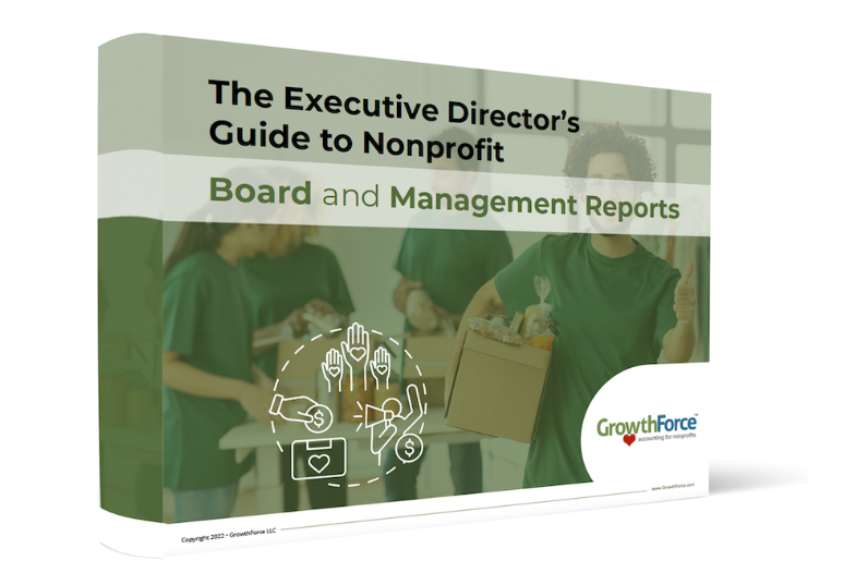 To learn more about nonprofit reporting and leveraging your numbers to improve your nonprofit leadership, download our free ebook. In The Nonprofit Executive Director's Guide to Board and Management Reports, we take a deep dive into the most important financial reports for nonprofit management and strategic leadership.